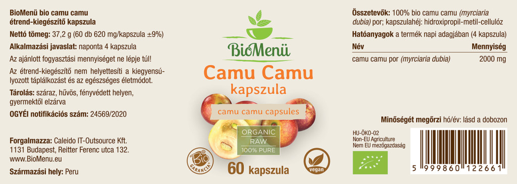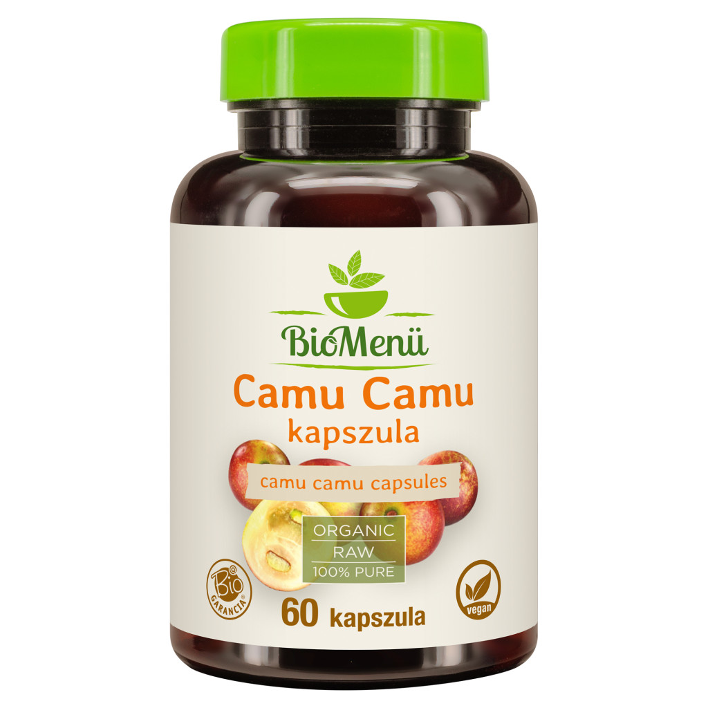 Porijeklom iz amazonske regije Južne Amerike, camu camu je grm koji divlje raste uz poplavna područja i izuzetno je otporan na poplave. Plod je crvenkasto-ljubičasta bobica, bogata vitaminom C. Bobice camu camu sadrže niz drugih antioksidansa i esencijalnih antioksidansa. Bobice camu camu također se koriste u tradicionalnoj prehrani za aromatiziranje slatkiša - pića i konzervansa - ali se sve više koriste kao dodatak prehrani zbog svoje visoke nutritivne vrijednosti. Odabrane zbog svoje najbolje kvalitete, sirove organske bobice camu camu čiste se u čistoj vodi, suše, a zatim fino melju.