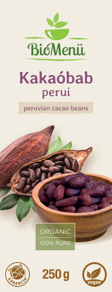 BioMenu organska zrna kakaa proizvode se od sorte cacao criollo, koja se zbog svoje izvrsne kvalitete naziva i =kraljem= zrna kakaa. 50% težine kakaa čine tri vrste masti koje nisu štetne za naše tijelo i nemaju učinak podizanja kolesterola (oleinska kiselina, stearinska kiselina i palmitinska kiselina), a sadrži i nekoliko aminokiselina (triptofan i arginin). U sirovom obliku vrlo je zdrav, izuzetno bogat antioksidativnim flavonoidima.