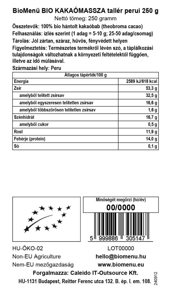 Stablo kakaovca Theobroma, porijeklom iz tropske klime Južne Amerike, sveto je drvo Maja i Asteka. Zrna kakaa ukusna su superhrana jer sadrže širok raspon antioksidansa i drugih hranjivih tvari. Zrna kakaa koja proizvode organski proizvođači u Peruu sadrže više antioksidansa od crnog vina i tri puta više od zelenog čaja. Zrna kakaa bogat su izvor minerala. Sirova zrna se beru ručno, odabiru se najkvalitetnija i fermentiraju kako bi se smanjila njihova početna gorčina. Za izradu kakao paste, melju se, a pasta se topi da postane tekućina. Tekućina se hladi i oblikuje u pločice. Kakao je bogat antioksidansima, tri vrste masti koje čine 50% njegove težine nisu štetne za naše tijelo i nemaju učinak podizanja kolesterola (oleinska kiselina, stearinska kiselina i palmitinska kiselina), a sadrži i nekoliko aminokiselina (triptofan i arginin). Kakao masa nije samo najvažnija sirovina za izradu čokolade, već i jedna od najpopularnijih namirnica na svijetu. Peruanski BioMenu tanjur kakao mase ukusna je superhrana.