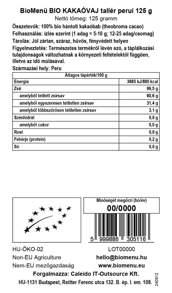 BioMenü organski diskovi peruanske kakaove maslaca 125 g slika proizvoda