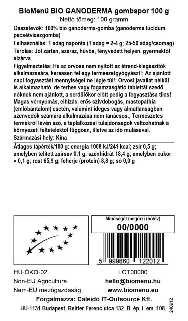 BioMenü organski prah od gljive ganoderma 100 g slika proizvoda