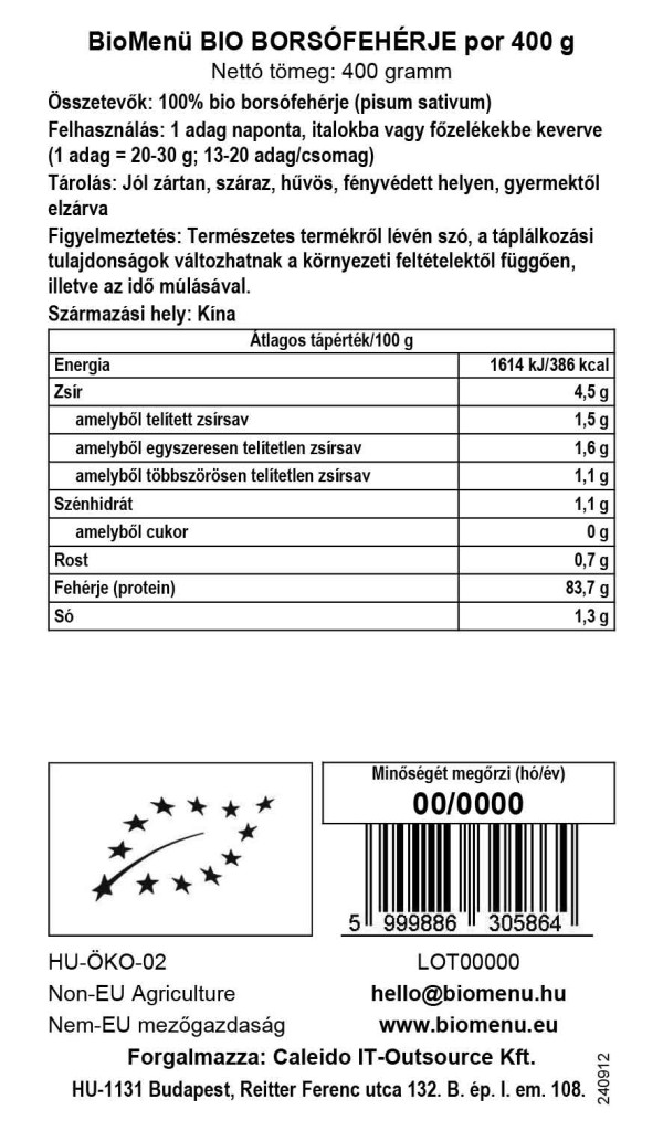 BioMenu ORGANSKI PROTEIN OD GRAŠKA u prahu napravljen je od odabranog, pročišćenog graška uzgojenog u kontroliranim uvjetima. Visokokvalitetni prirodni izvor proteina koji ne sadrži kolesterol. Bez GMO-a, nealergen i ne sadrži teške metale, pesticide, životinjsko podrijetlo ili onečišćujuće tvari. S bezbrojnim mogućim primjenama, to je prvoklasno sredstvo za isporuku biljnih proteina tijelu.