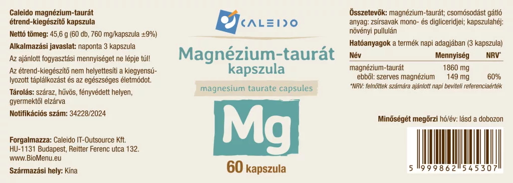 magnezijev taurat 1860 mg, od čega organski magnezij 149 mg (NRV 60%)