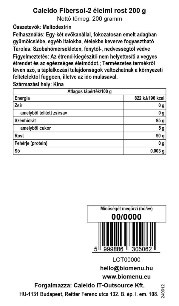 - Sve sirovine korištene za proizvodnju Fibersol®-2 ne sadrže GMO, u skladu s Direktivom 2001/18/EZ